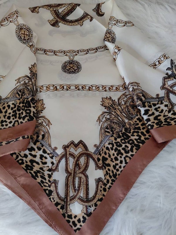Foulard satiné carré beige et marron dimensions 70 cm x 70 cm